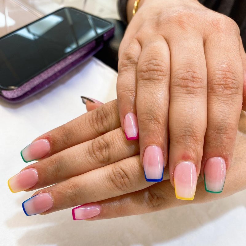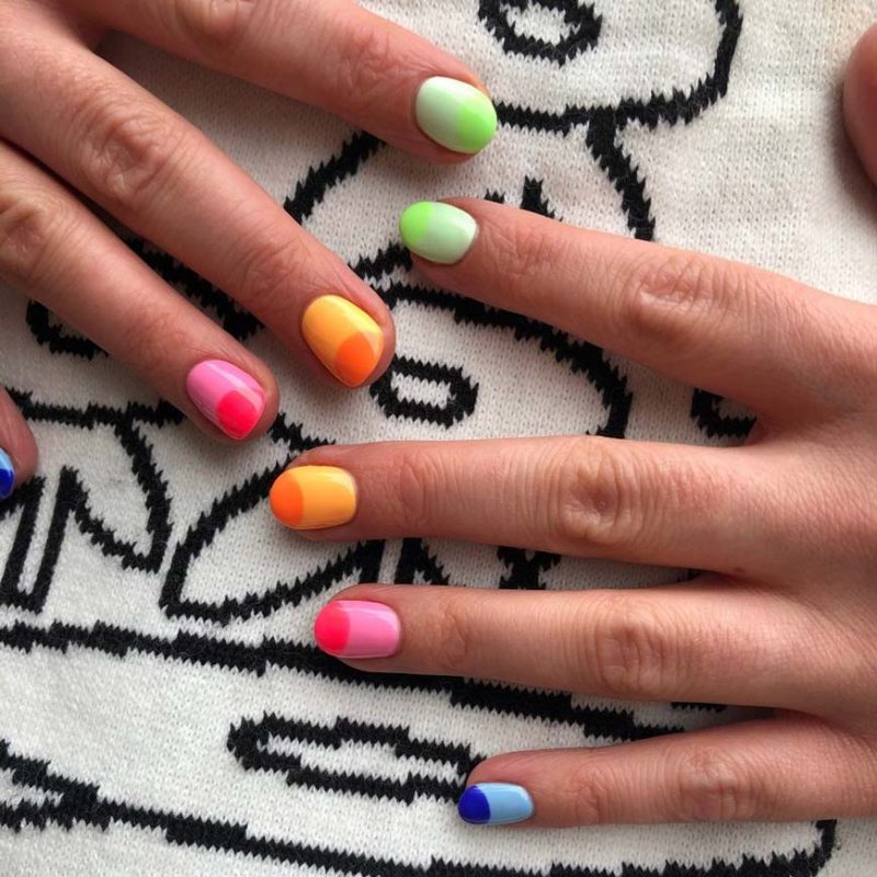 Classic manicure is a multiple nail colors on one hand. You can do multi colored nails for greater brightness and expressiveness. Even a strict business lady can use this option. Despite the fact that such nails look light and carefree,with successfully chosen outfit and accessories the manicure will be a wonderful addition. The most important condition is harmonious colors of polish, clothes and style. Such kind of manicure is a good way to express your own individuality and positive energy. Multicolored manicure became popular in 2022 and even now it’s still in fashion.