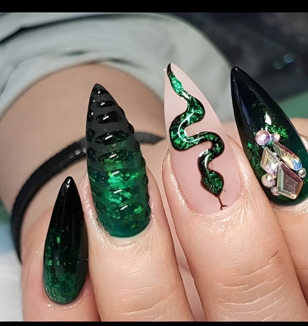 30 Hottest Black And Green Nails – One Million Ideas