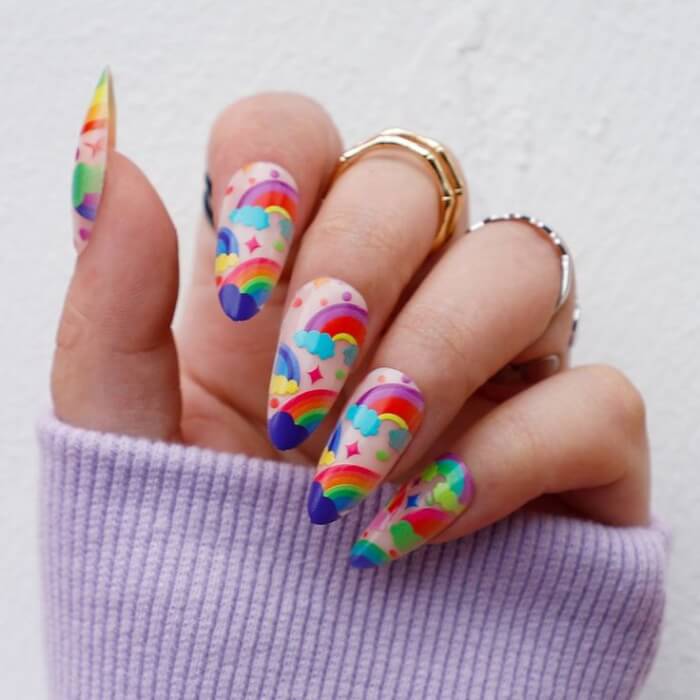32 Striking Rainbow Nails That Help You Stand Out From