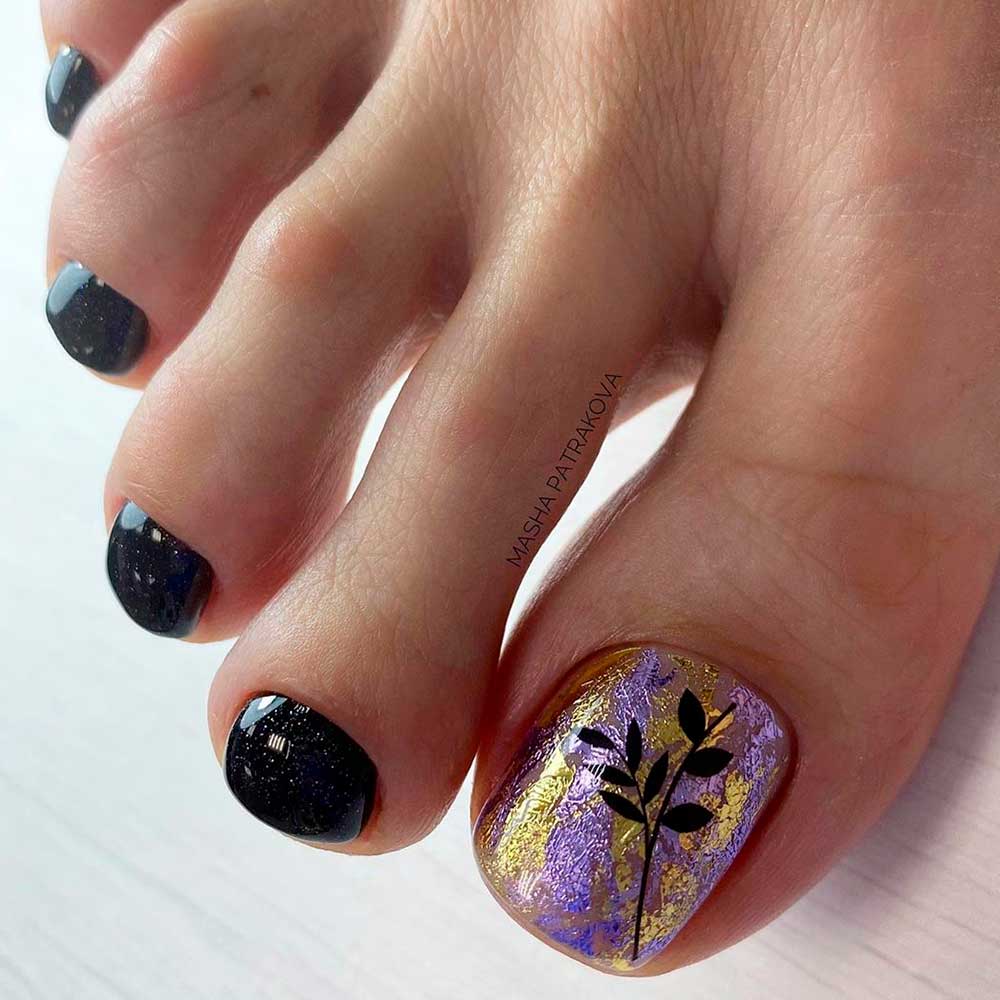 toe-nail-designs-beach-gold-foil-leaves