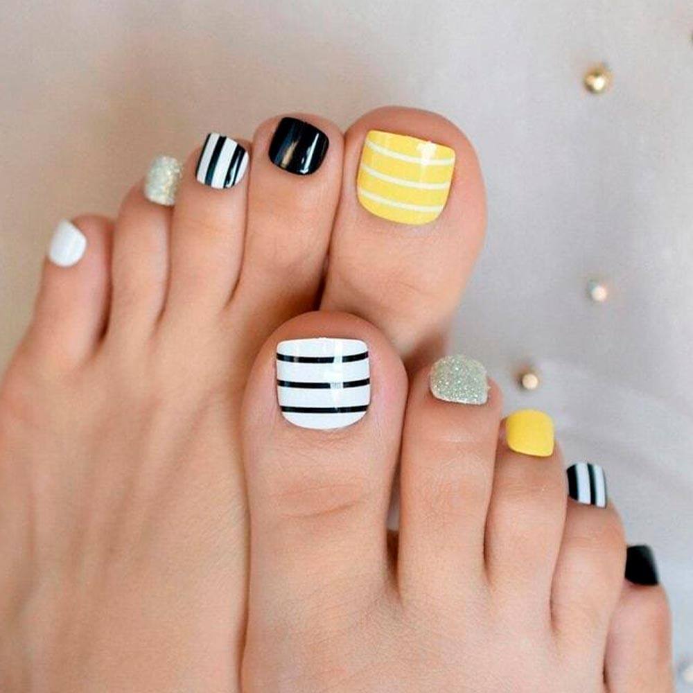 toe-nail-designs-beach-yellow-black-striped