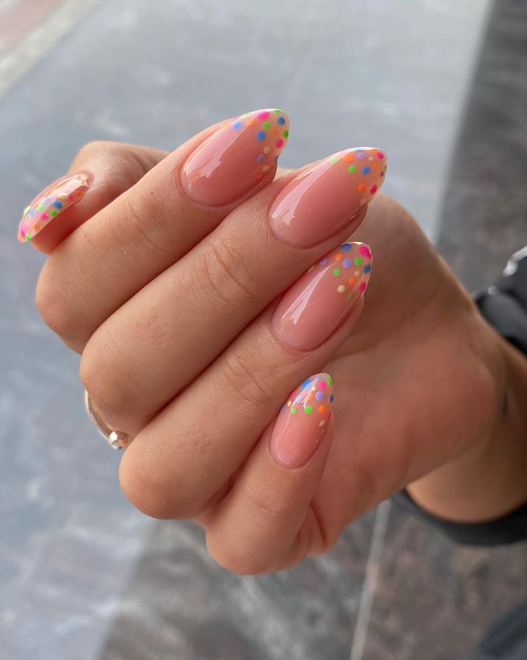 Colorful-Polka-Dot-French-Almond-Nails