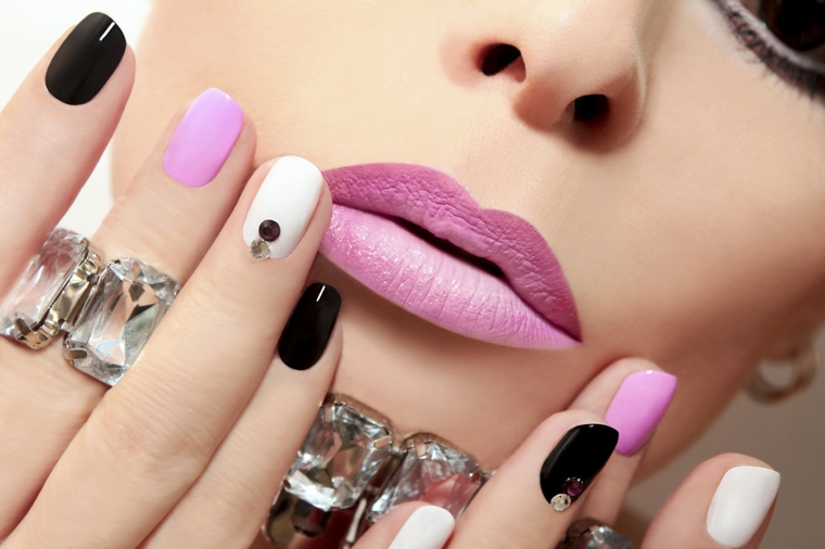 Smalto opaco di colore rosa e nero con brillantini