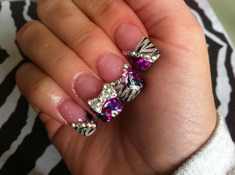 French manicure con glitter viola